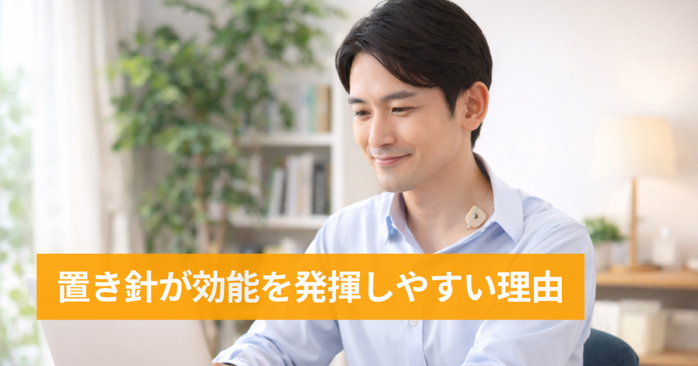 こうした 持続刺激・血流・自律神経・経絡・使いやすさ の組み合わせが、置き針が効能を発揮しやすい理由として説明されることが多いです。